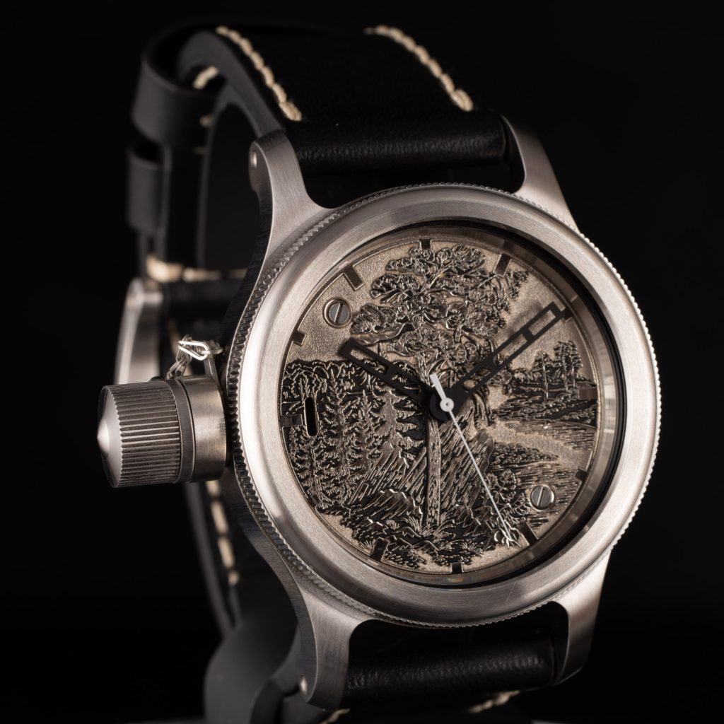 Часы АГАТ АртСталь 46мм, Златоустовская гравюра Пейзаж, мех.Восток