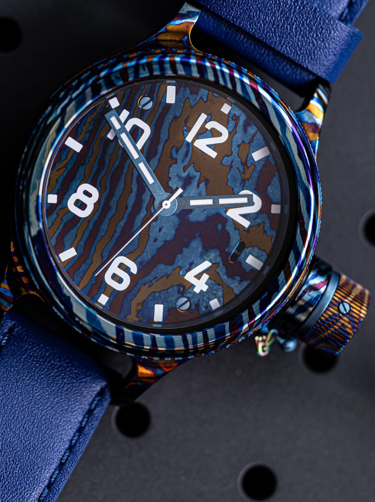 Часы АГАТ Эксклюзив46 мм, корпус и циферблат Титановый Дамаск, механизм АГАТ