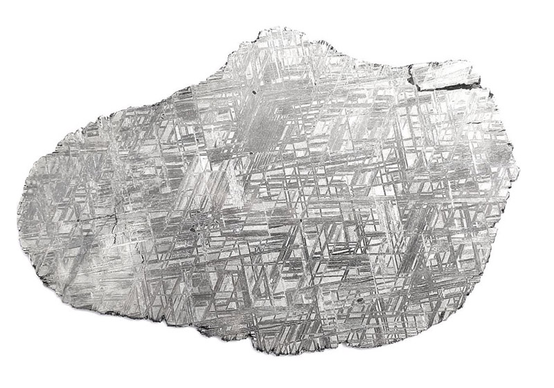 Особого внимания заслуживают октаэдриты. Если такой метеорит распилить, отполировать его поверхность, а затем протравить слабым раствором азотной кислоты, то проявится характерный, удивительно красивый рисунок, очень похожий на морозную роспись на зимнем окне – «видманштеттеновы фигуры».