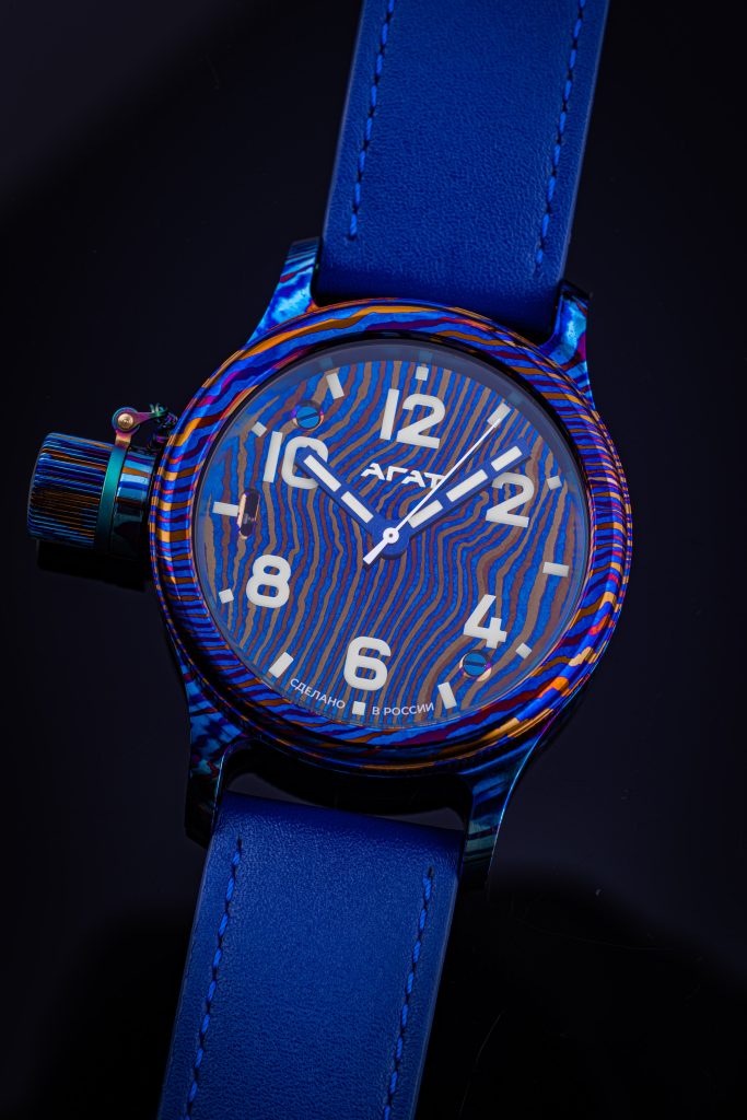 Кстати, если в эту космическую смесь добавить цирконий, то получится еще более насыщенная цветовая гамма. Но и в разы усложнится процесс производства, так как цирконий – металл капризный. Работать с ним нужно крайне аккуратно, потому что он легко загорается. Не плавится, а именно вспыхивает, как картон. Зато результат получается просто невероятный, его обязательно стоит увидеть вживую. И непременно нужно подержать часы в руках. Чтобы удивиться их непривычной легкости, особенно с учетом знаменитого, «златоустовского» размера. Титан действительно один из самых легких металлов, не зря его называют «крылатым» и широко используют в авиации и ракетостроении.